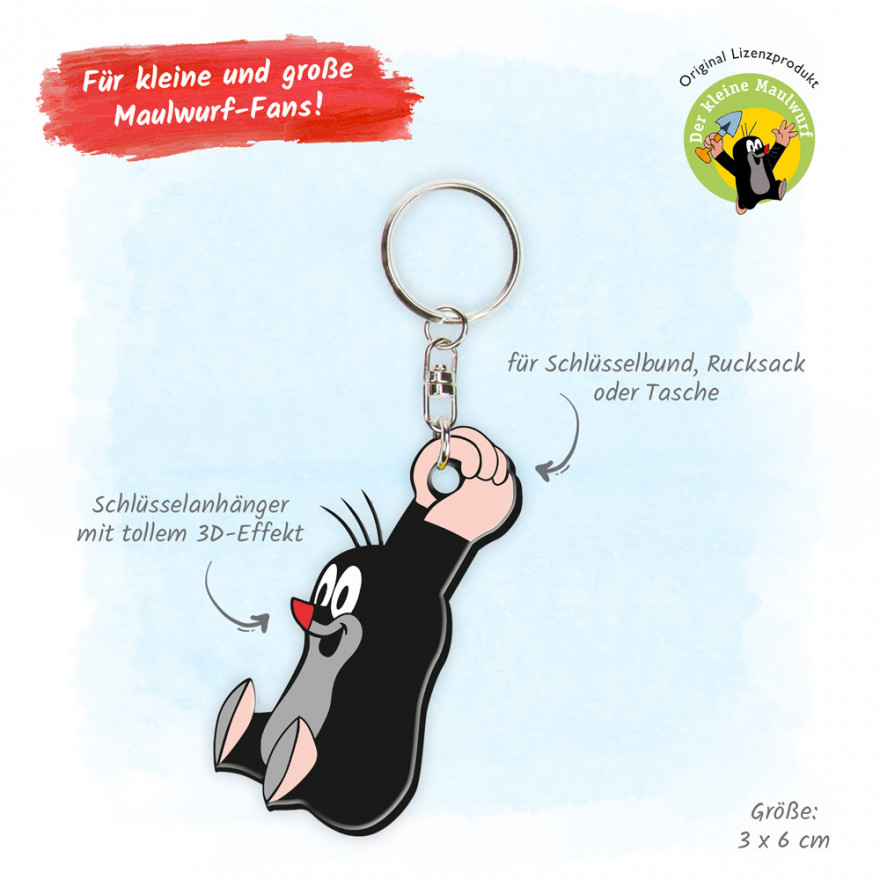 Der Schlüsselanhänger für Fans vom kleinen Maulwurf in 3D-Optik mit Schlüsselring. Egal ob an Schlüsselbändern, Rücksäcken, Taschen oder Jacken.