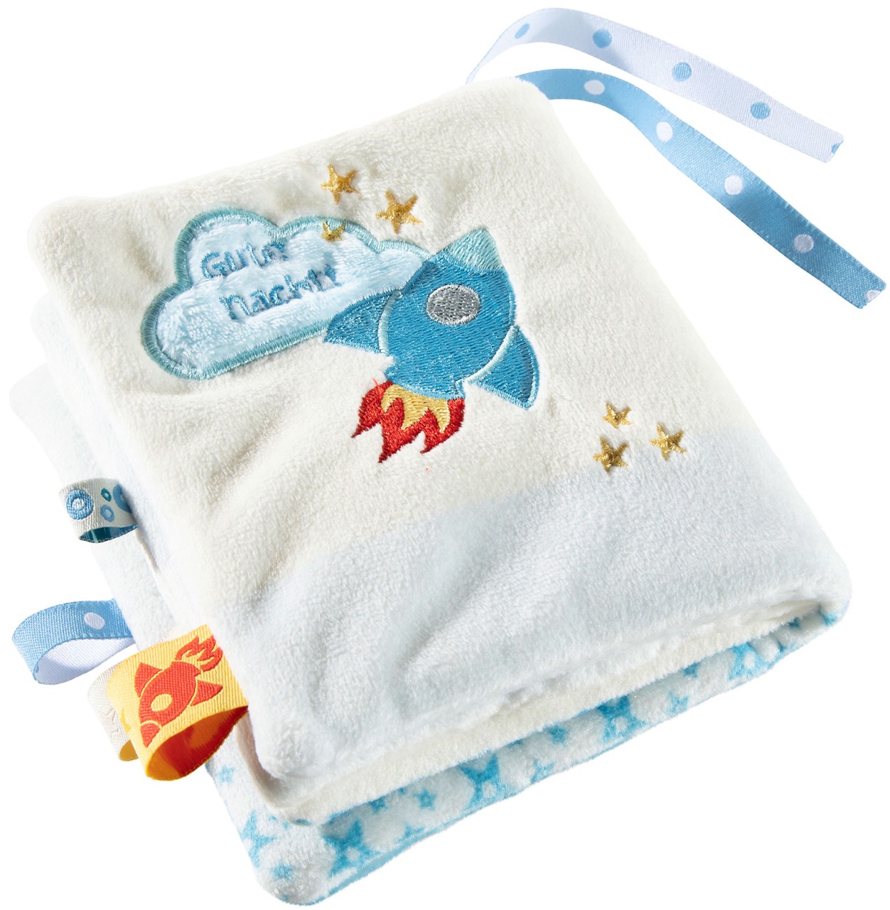 Dank der handlichen Größe von 12 cm passt das Plüschbuch perfekt in kleine Kinderhände und kann problemlos überallhin mitgenommen werden. Ob zu Hause, im Auto oder im Kinderwagen – dein Kind hat sein liebstes Buch immer bei sich. Die Farben Blau, Weiß und Gelb sind ansprechend und beruhigend zugleich, ideal für kleine Entdecker.
